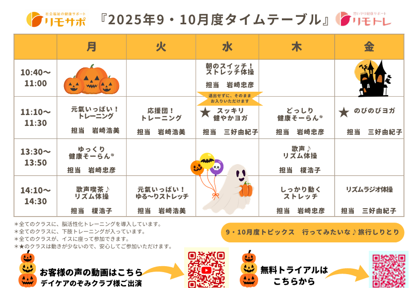 10月のタイムテーブルです。